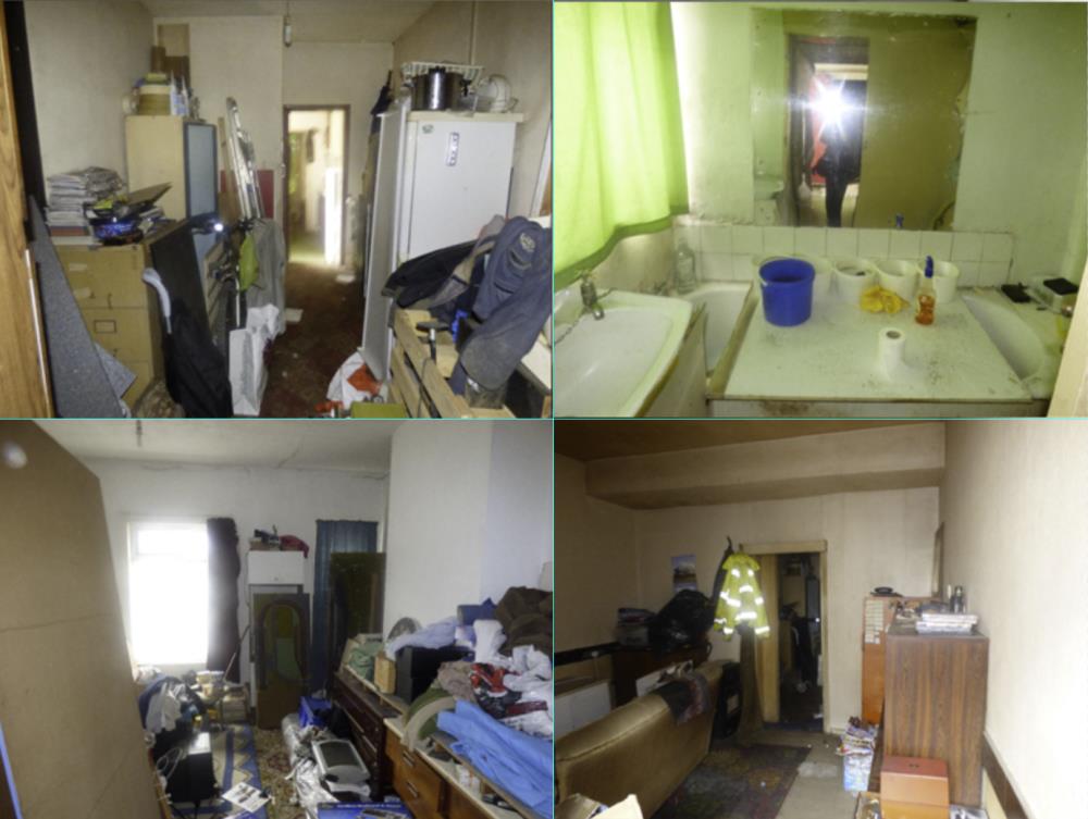 Inne pokoje umieszczone na zdjęciach w ogłoszeniu pokazują tylko brudne, zaniedbane i pełne bałaganu pokoje i łazienkę.