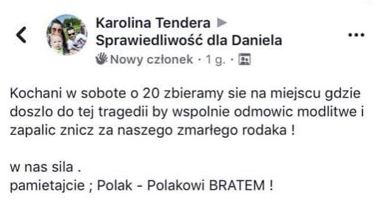Na portalu Facebook jest udostępniana informacja o tym że Polacy zbierają się w sobotę o 20:00 w miejscu tragedii, aby wspólnie odmówić modlitwę i zapalić znicz dla zmarłego rodaka. Niestety nie znamy szczegółów.