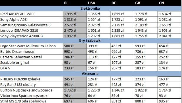 Polscy klienci mogą taniej kupić w sklepach internetowych w Stanach Zjednoczonych i Niemczech, w zależności od kategorii danego produktu. Polacy, którzy robią zakupy w USA mogą kupić elektronikę o 35 proc., a ubrania nawet o 55 proc. taniej niż w polskich sklepach. Gry i zabawki są połowę tańsze, a 25% mniej zapłacimy za kosmetyki.