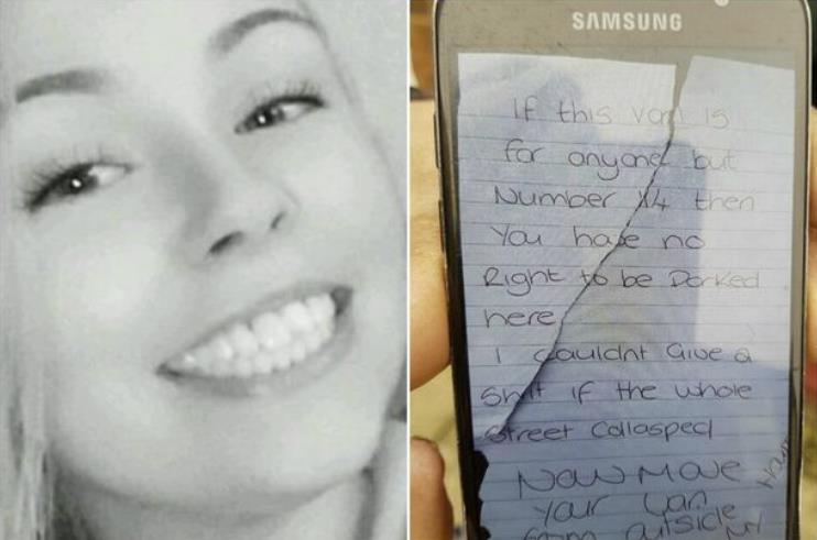Pełna treść notatki brzmiała: „Jeśli ten van przyjechał do kogoś spod numeru 14., to nie ma prawa tu parkować. Mogłaby zapaść się nawet cała ulica, g**** mnie to obchodzi. A teraz zabierzcie swój samochód spod mojego domu”.
