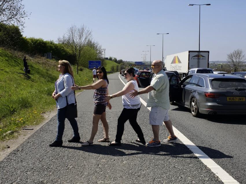 Do wypadku doszło niedaleko Rochdale, Greater Manchester na drodze M62. Rozbita ciężarówka zapaliła się powodując trzygodzinne korki, ale niektórzy z podróżnych znaleźli sposób, jak spędzić ten czas.