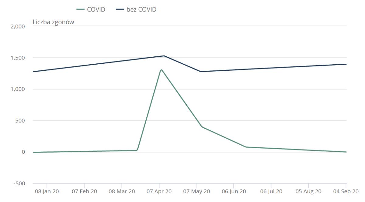 Jednak późniejszy stopniowy wzrost liczby zgonów innych niż COVID-19, podczas gdy liczba zgonów z powodu COVID-19 spadała, może sugerować, że są to zgony spowodowane opóźnionym lub przerwanym leczeniem innych schorzeń.